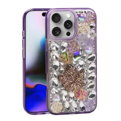 iPhone 12/13 Pro Max Luxury Diamond Case With Leaf Design & Strap Purple