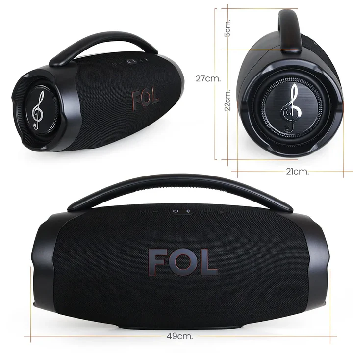 Experience impressive power with the FS-R207 portable speaker. Equipped with a 5.25-inch main speaker and two additional 3-inch speakers, this speaker delivers powerful, clear sound with deep bass and crisp treble. Stay connected to your favorite radio stations with the built-in FM radio tuner. Connect a variety of devices via Bluetooth, USB, or 3.5mm auxiliary port for a seamless listening experience. Enjoy over 4 hours of continuous playback with the 7.4V/6000mAh battery and fast recharging with the interlock charging interface. Its compact and waterproof design with IPX5 rating makes it perfect for any adventure. Discover a new way to enjoy your favorite music with the FOL FS-R207 speaker.